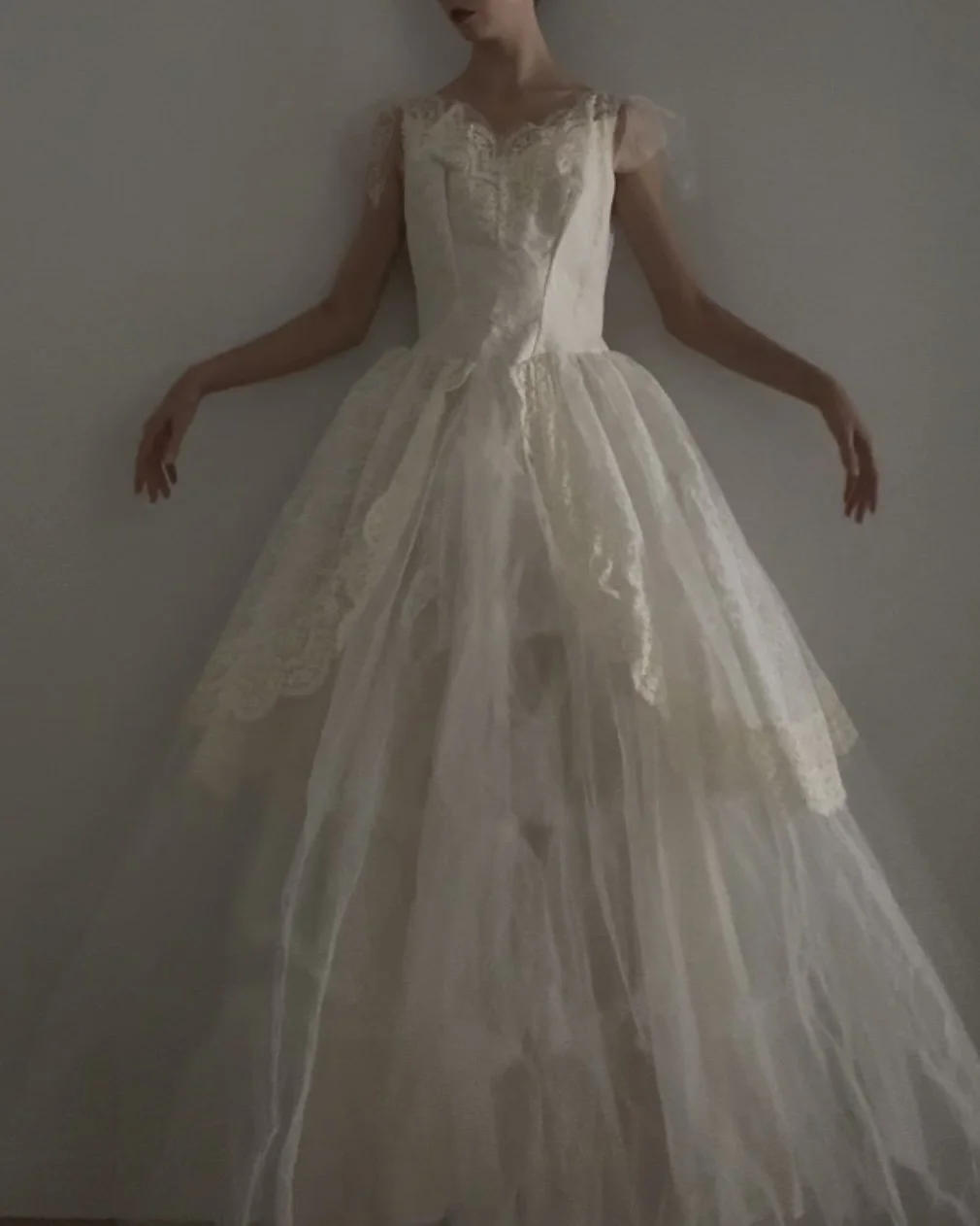 BRIDAL ELEGANT PURE SILK GOWN AND SASH SET (S) $848.00 ELEGANT CREAM SILK COWL NECK GOWN AND SASH SET (S) $998.00 ETHEREAL WHITE SILK CHIFFON DRAPED GOWN (S) $498.00 ELEGANT 1950'S DECONSTRUCTED TULLE AND LACE DETAIL GOWN (M) $418.00 ANTIQUE 1920'S BRIDAL HEADBAND WITH BLUE SILK RIBBON (S) $218.00 EXQUISITE 1930'S PURE SILK CREAM LACE GOWN, GLOVES, BUN COVER SET (XS) $548.00 ONE OF A KIND 1950'S LIQUID SATIN GOWN, GLOVES, AND HEART HAT SET (S) $998.00 Sold out 1970'S ETHEREAL LACE APPLIQUE ORGNAZA BILLOW SLEEVE GOWN (XS) $318.00 Sold out ANTIQUE 1930'S LIQUID SATIN BEADED DETAIL GOWN (XS) $348.00 Sold out 1970'S ORGANZA FLUTTER SLEEVE LACE DETAIL GOWN (M) $348.00 Sold out ANTIQUE 1920'S ETHEREAL BRIDAL HEADBAND $168.00 Sold out MADE IN ENGLAND SATIN COTTON LACE UP CORSET (S/M) $298.00 Sold out ONE OF A KIND RECONSTRUCTED CREAM LIQUID SATIN TAFFETA SKIRT (M) $248.00 Sold out 1970'S EXQUISITE HIGH NECK PEARL BEADED LACE DETAIL GOWN (S) $348.00 Sold out EXQUISITE MAXIMALIST LACE ORNATE DETAIL PUFF SLEEVE GOWN (XS) $498.00 Sold out EXQUISITE LUXURY IVORY SILK RAW RUFFLE DETAIL TOP (M) $318.00 Sold out EXQUISITE ILLUSIONS LACE BODICE WHITE COTTON GOWN (S) $398.00 Sold out