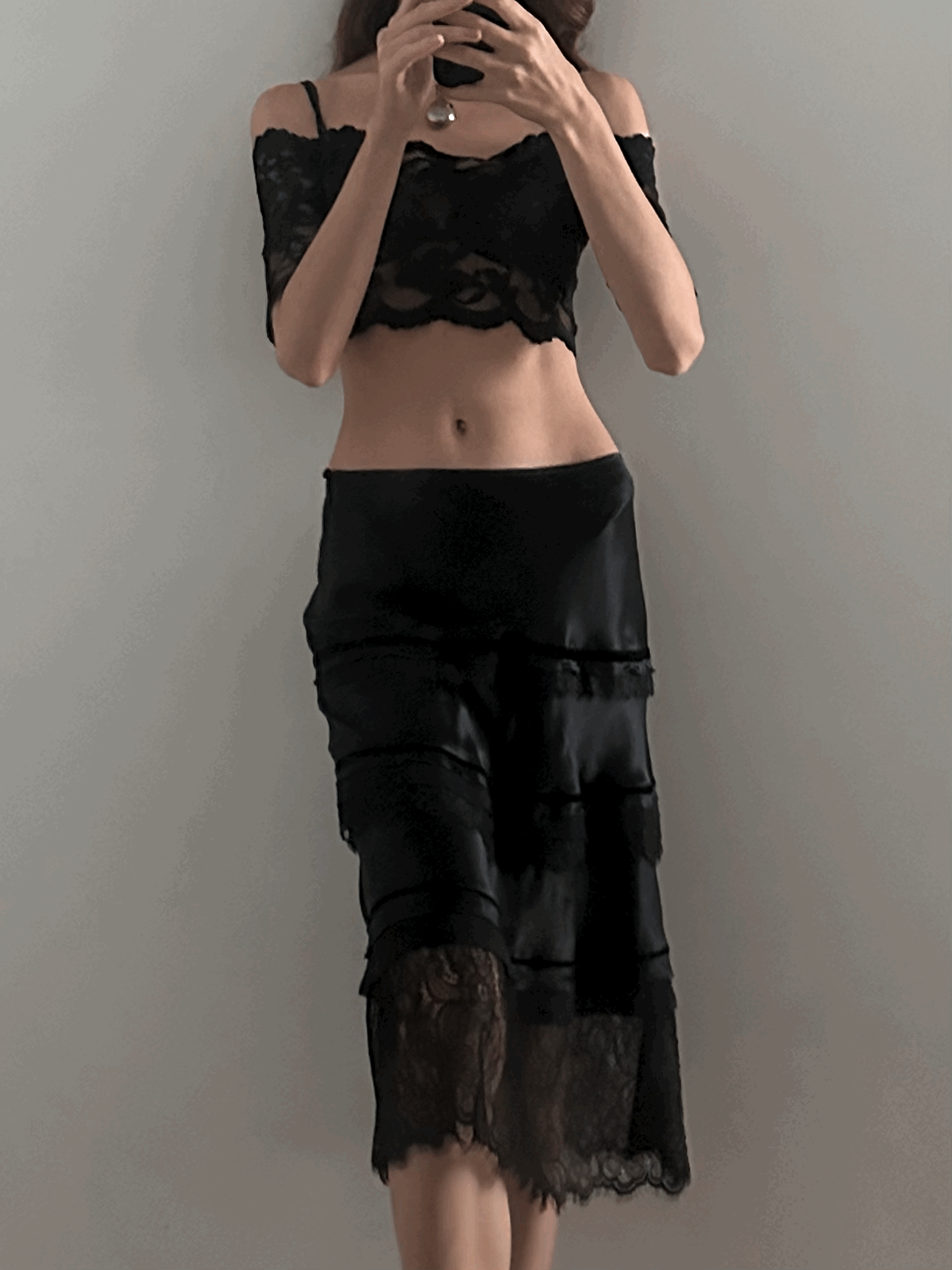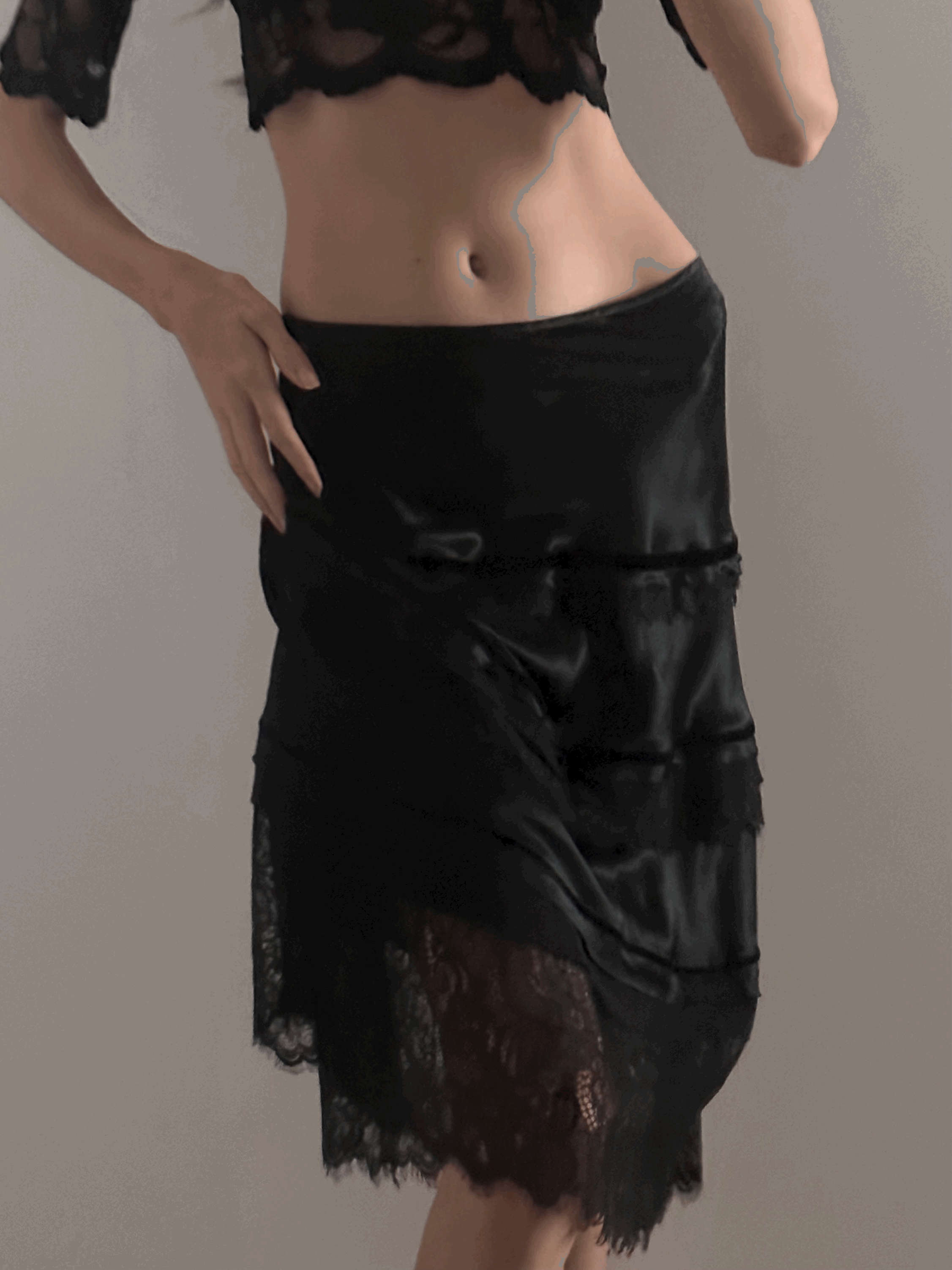 SALE › 1990'S SILK TIERED LACE DETAIL SKIRT (XS) Image 1 of 2 Image 2 of 2 1990'S SILK TIERED LACE DETAIL SKIRT (XS) Sale Price: $50.00 Original Price: $128.00 sold out Vintage 1990’s black silk lace tiered skirt with velvet ribbon detail.Size XS26”fixed waist Sold Out Added! Vintage 1990’s black silk lace tiered skirt with velvet ribbon detail.Size XS26”fixed waist