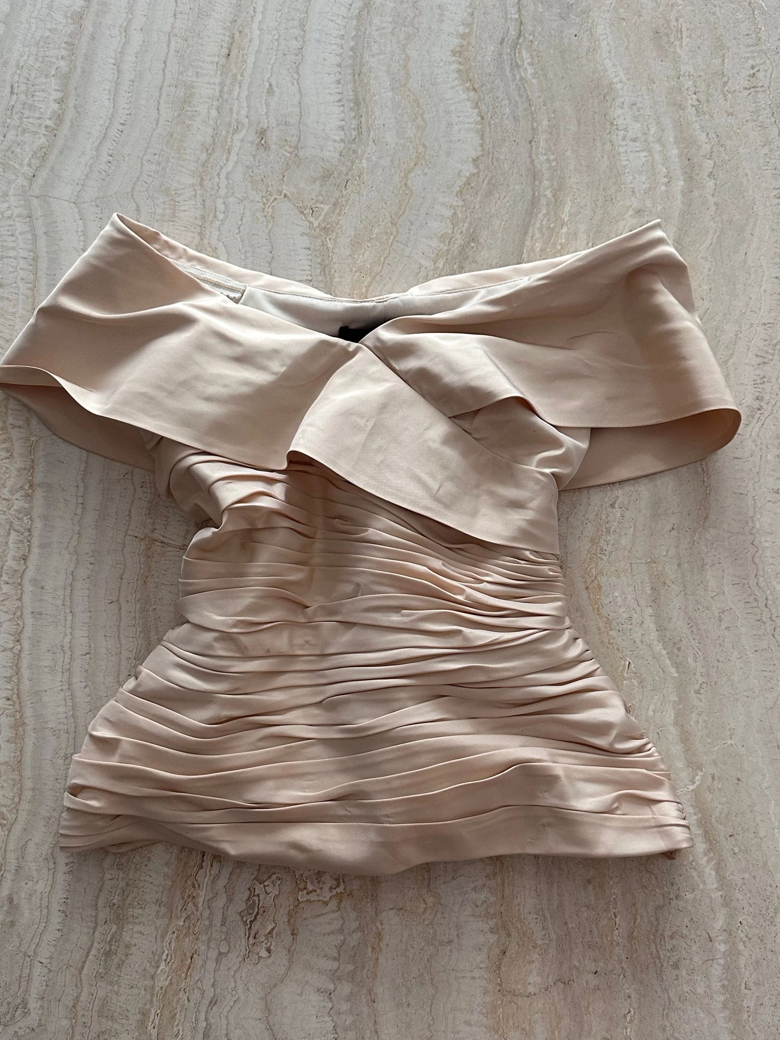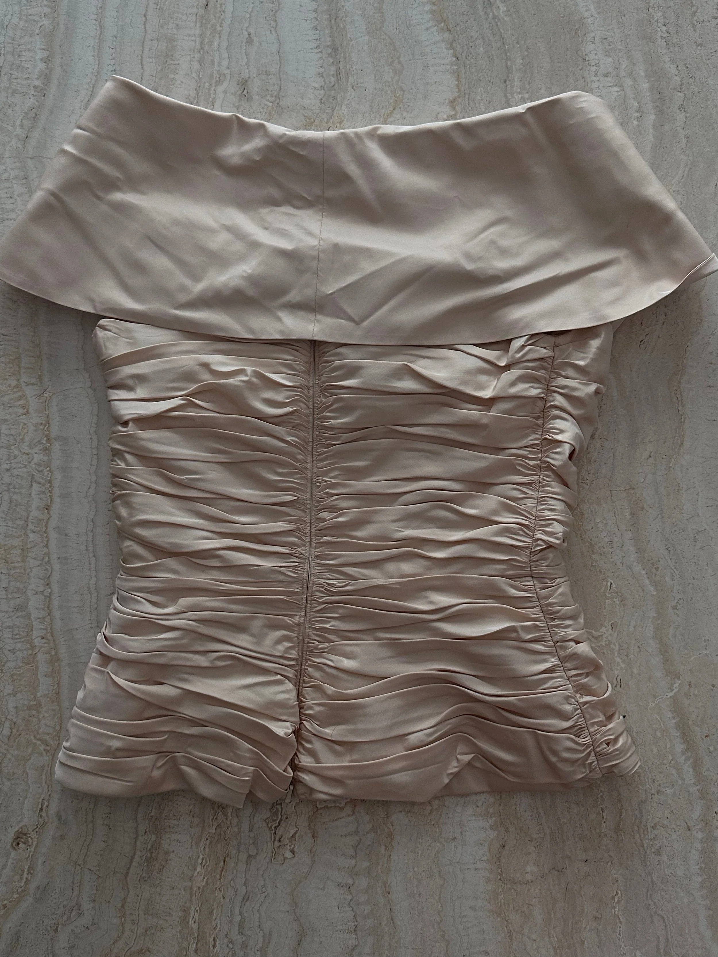 Vintage 1990’s luxury pure silk taffeta blouse with pleated bodice and off the shoulder collar.