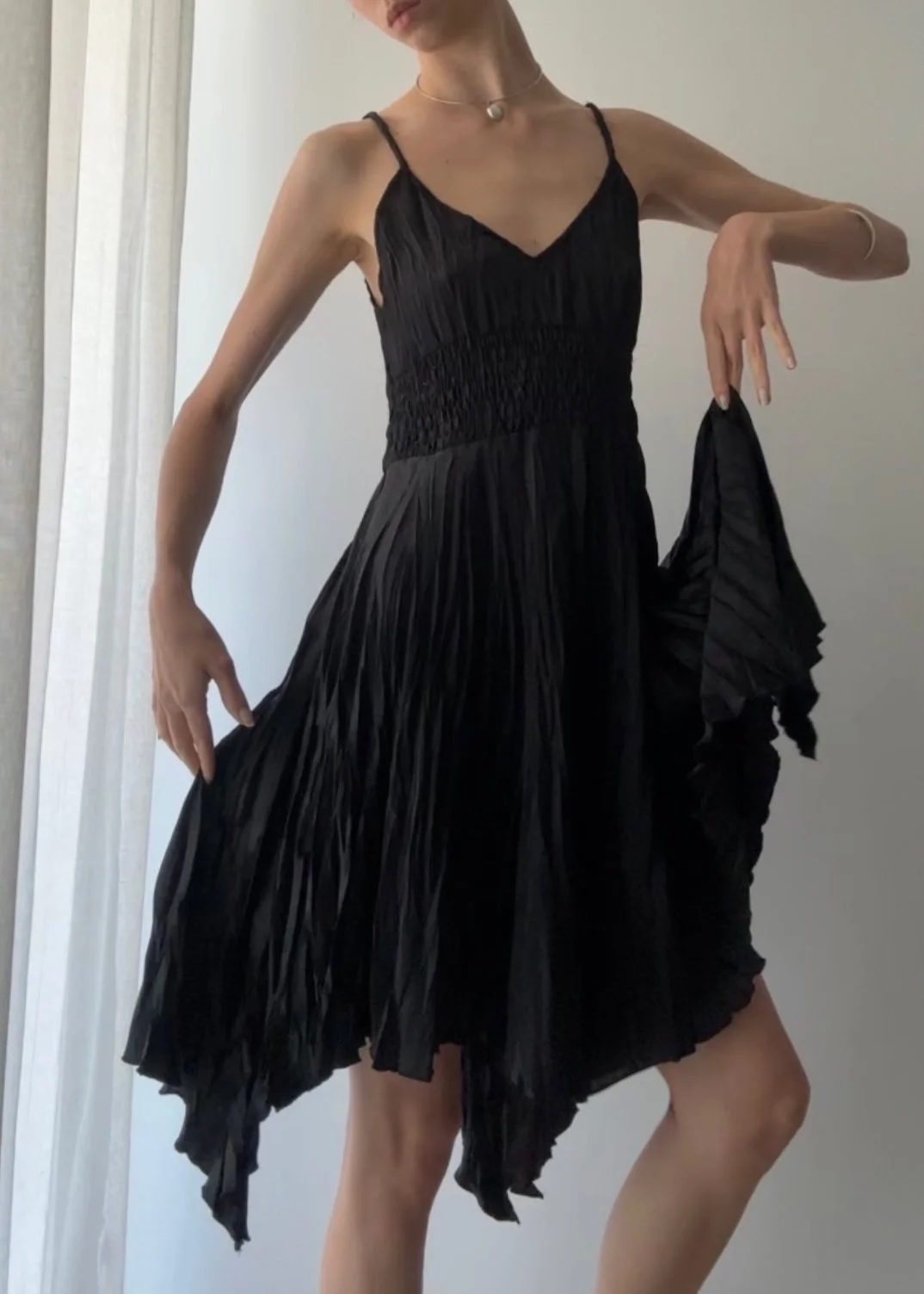 SALE › Y2K BLACK PLEATED FAIRY SLIP DRESS (M) Image 1 of 4 Image 2 of 4 Image 3 of 4 Image 4 of 4 Y2K BLACK PLEATED FAIRY SLIP DRESS (M) Sale Price: $75.00 Original Price: $148.00 sold out Vintage Y2K black pleated fairy hem slip dress with braided strap detail. Size M 34” Bust 28-30” Underbits Sold Out Added! Vintage Y2K black pleated fairy hem slip dress with braided strap detail. Size M 34” Bust 28-30” Underbits