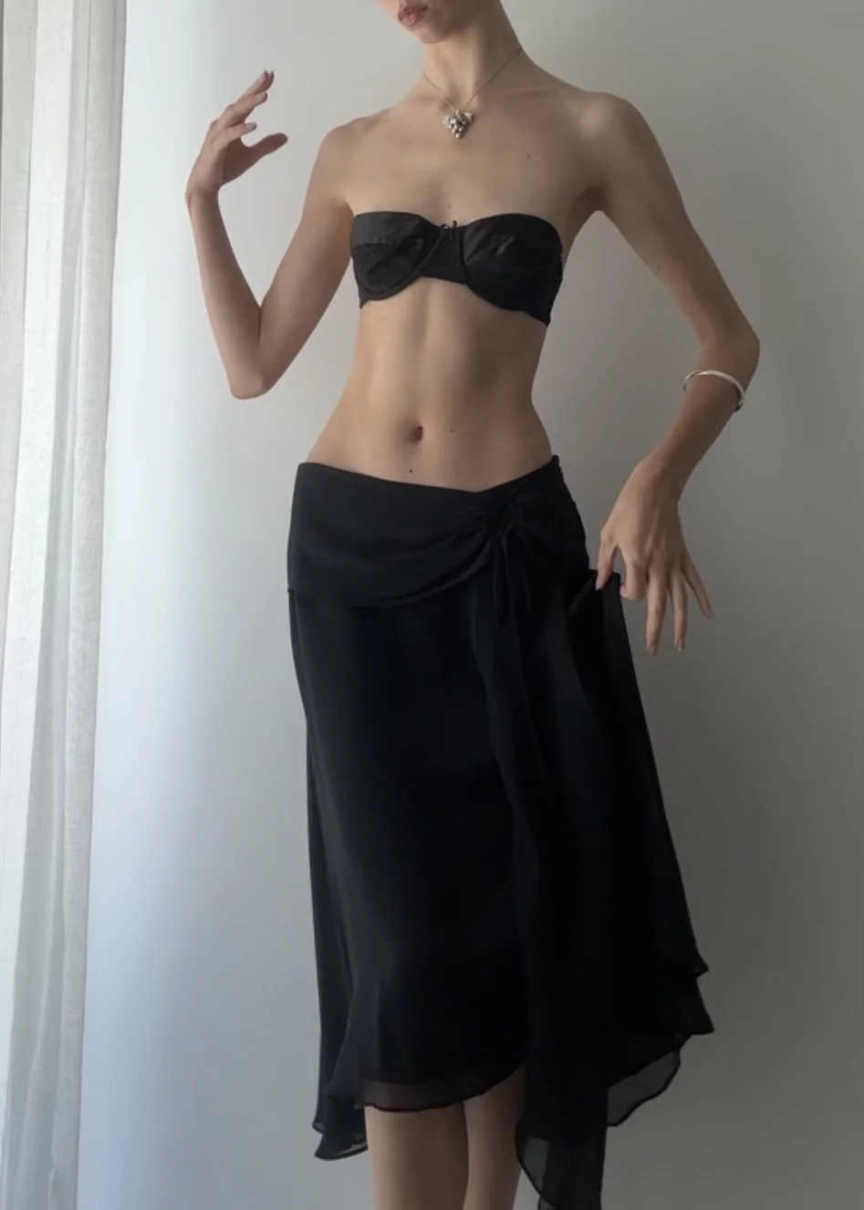SALE › Y2K BLACK PURE SILK CHIFFON DRAPED DETAIL SKIRT (S/M) Image 1 of 4 Image 2 of 4 Image 3 of 4 Image 4 of 4 Y2K BLACK PURE SILK CHIFFON DRAPED DETAIL SKIRT (S/M) Sale Price: $80.00 Original Price: $168.00 sold out Vintage Y2K Black pure silk chiffon skirt with stunning draped waistline detail. Size S/M27-29” Waist Mid length Sold Out Added! Vintage Y2K Black pure silk chiffon skirt with stunning draped waistline detail. Size S/M27-29” Waist Mid length